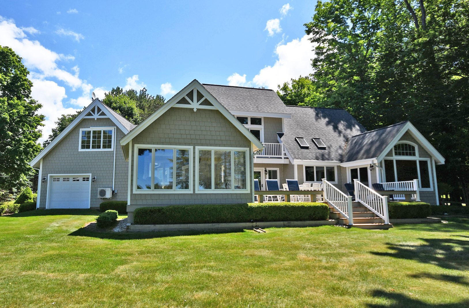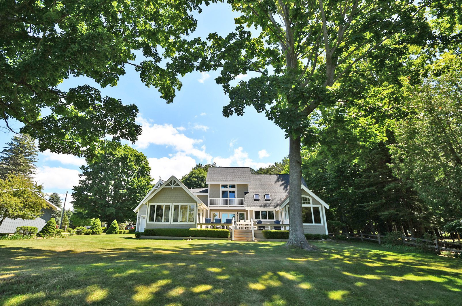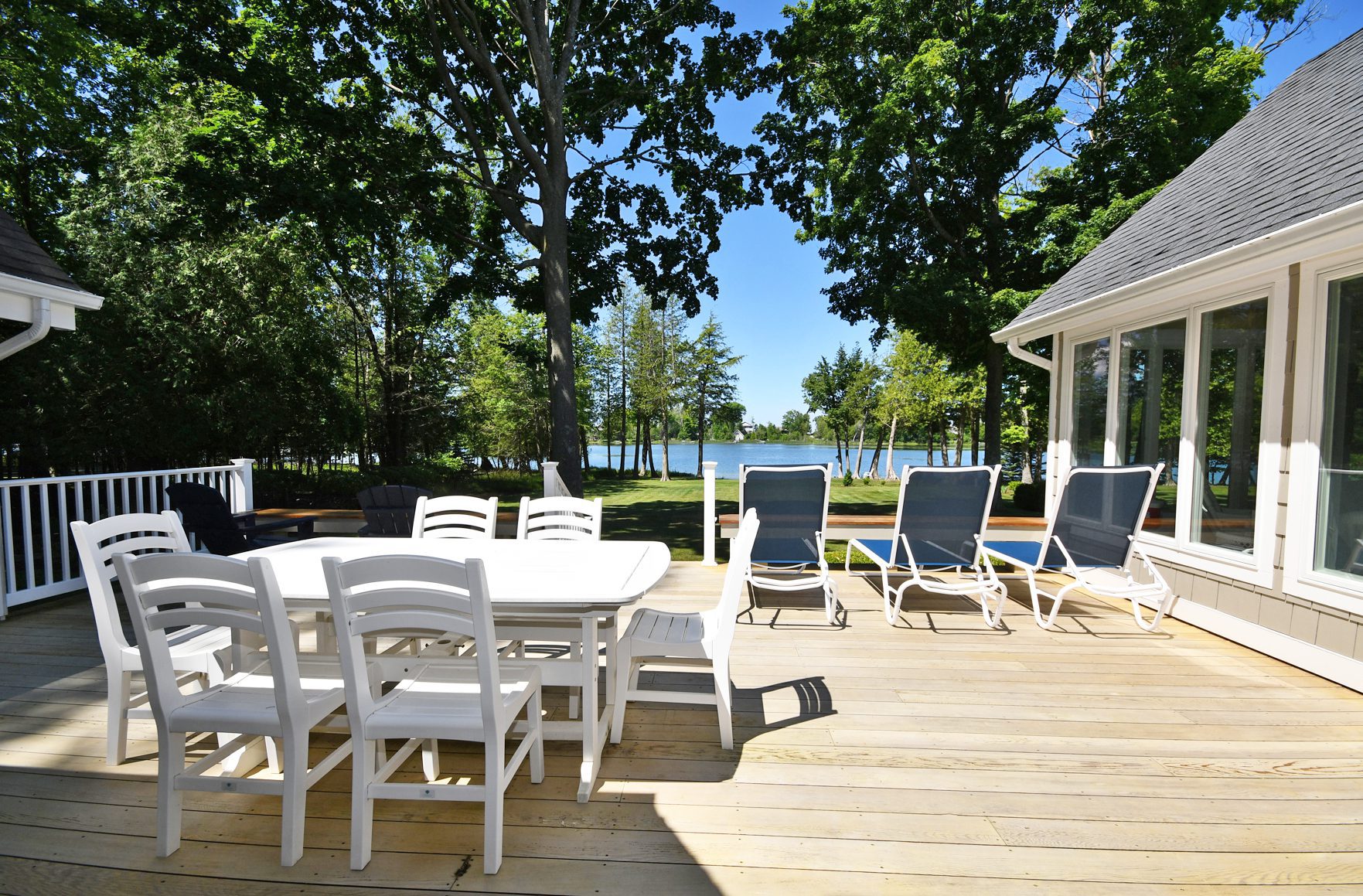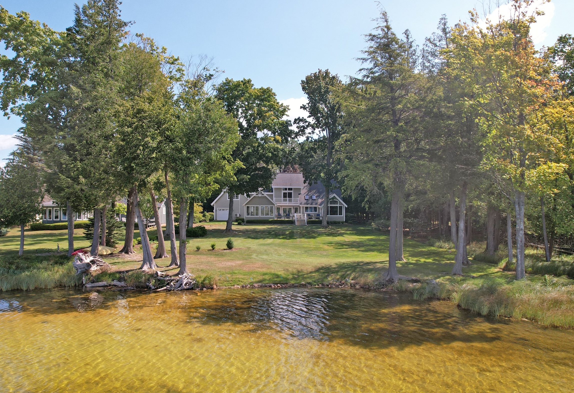 From the moment one makes their way along the meandering, tree-lined driveway, it becomes clear that this stunning, immaculately kept home and property has more of an estate-like feel than that of a lake cottage. Originally built in 1987, this home has undergone a full remodel in the highest, dedicated fashion. It is situated in the village of Empire, on 100 ft of South Bar Lake water frontage and two parcels of land. No detail was spared in the remodeling process, both in design and with comfort and functionality. The lawn is expansive, manicured, and dotted with towering, stately trees, the decking runs the width of the home, allowing for great entertaining space and incredible views, and there's a separate, enclosed sunroom on one portion of the deck. Inside, the lofted ceilings open to a stunning, sundrenched kitchen, which is adjacent to both the living and dining room spaces. On the main floor, there's a powder room, primary suite with lake views and access, and a large, cheerful laundry and mudroom room that leads to the attached and heated two car garage. Upstairs, there are two more spacious bedrooms, two full bathrooms, one with soaring, dramatic ceilings, and at the end of the hallway is a very oversized bonus room space that serves as an additional family room area, game playing space, and also has its own stairway that leads down the garage. This home is on natural gas, has central heat and air, a back up generator, is on Empire water, a private septic system, has access to high speed internet and cable, and so, so very much more. Being sold furnished with few exceptions of artwork and personal items. This is a turn-key home, ready to be made in to your dream residence or getaway! Just a 10 minute walk in to downtown Empire, very near its incredible park on Lake Michigan, and just a stone's throw from the Sleeping Bear Dunes, Heritage Trail, Glen Lake, and Glen Arbor. One couldn't ask for too much more!