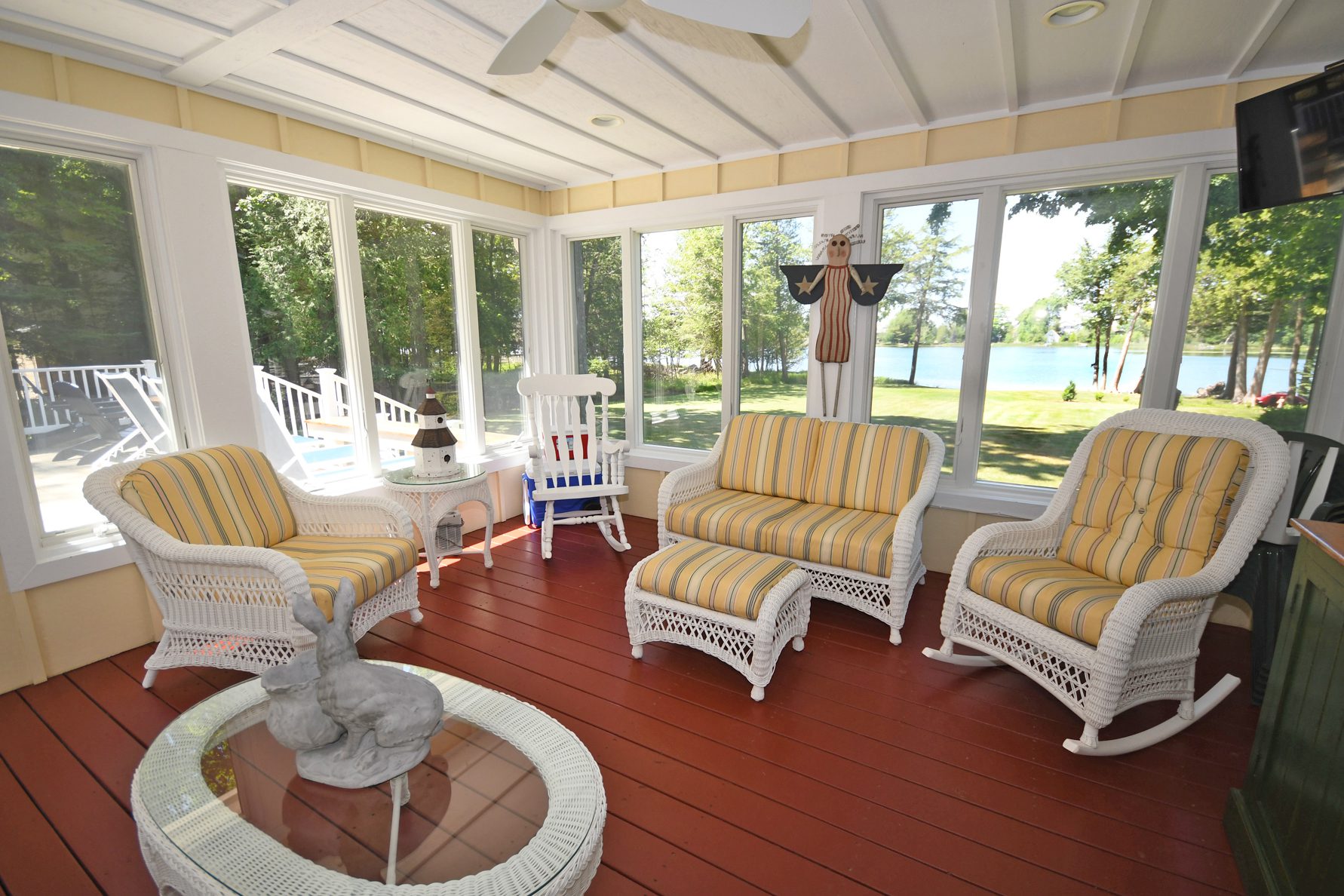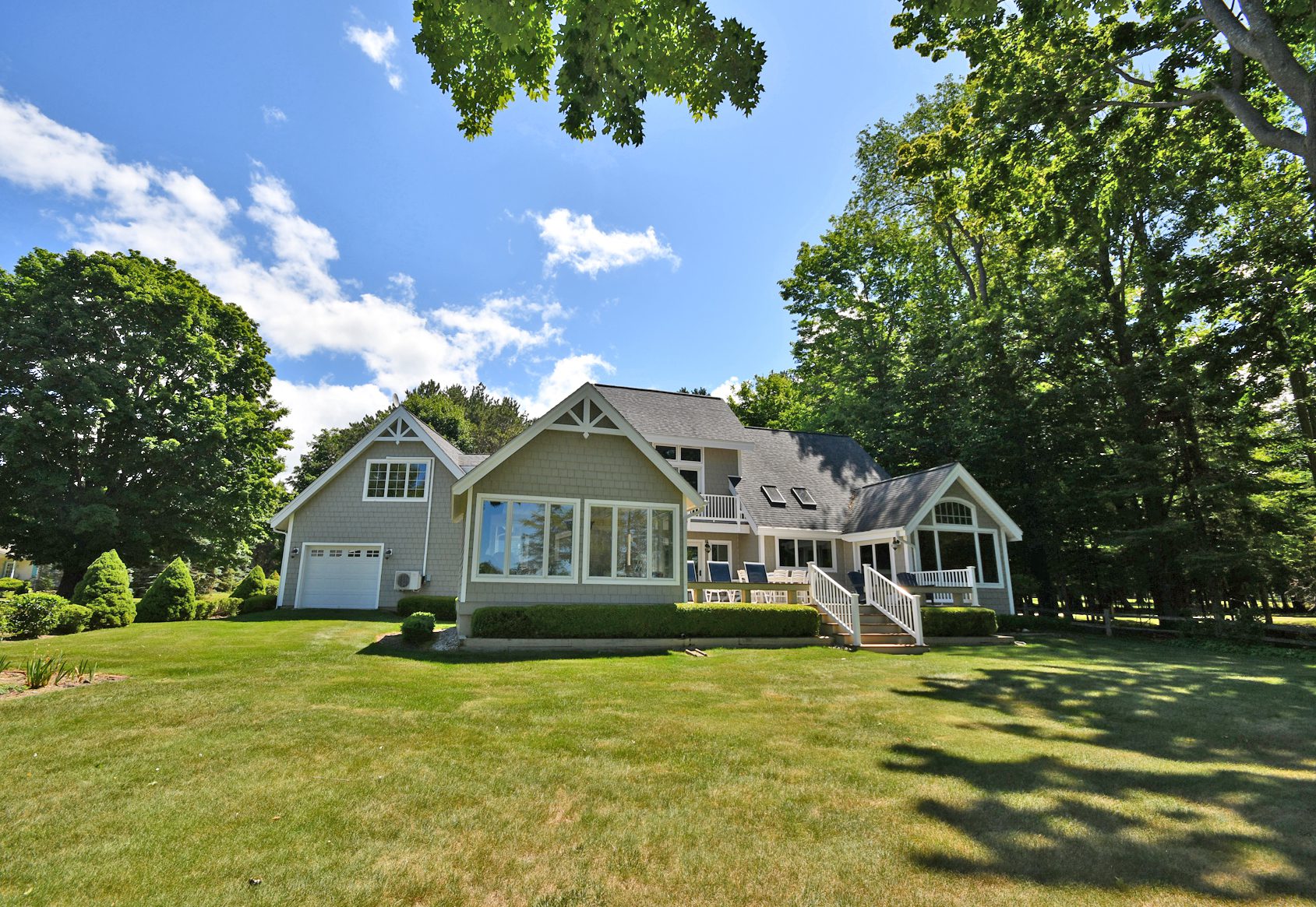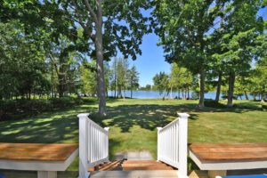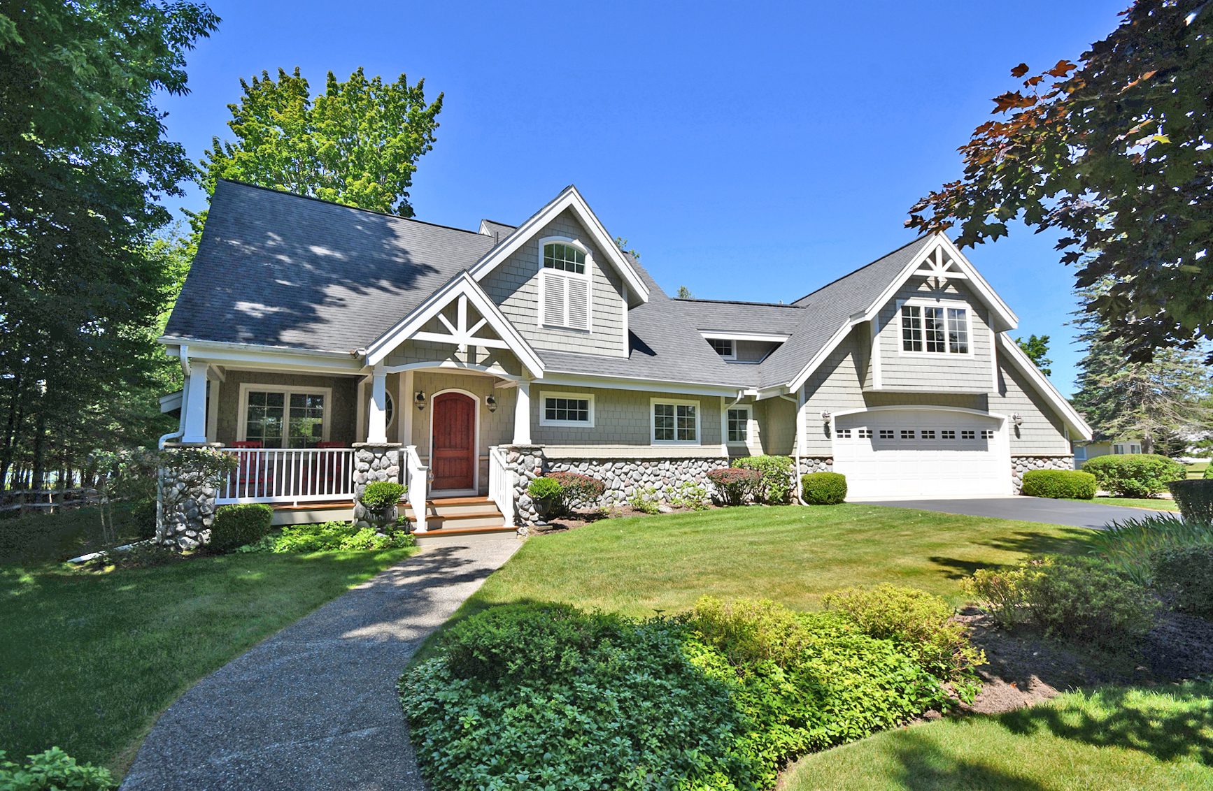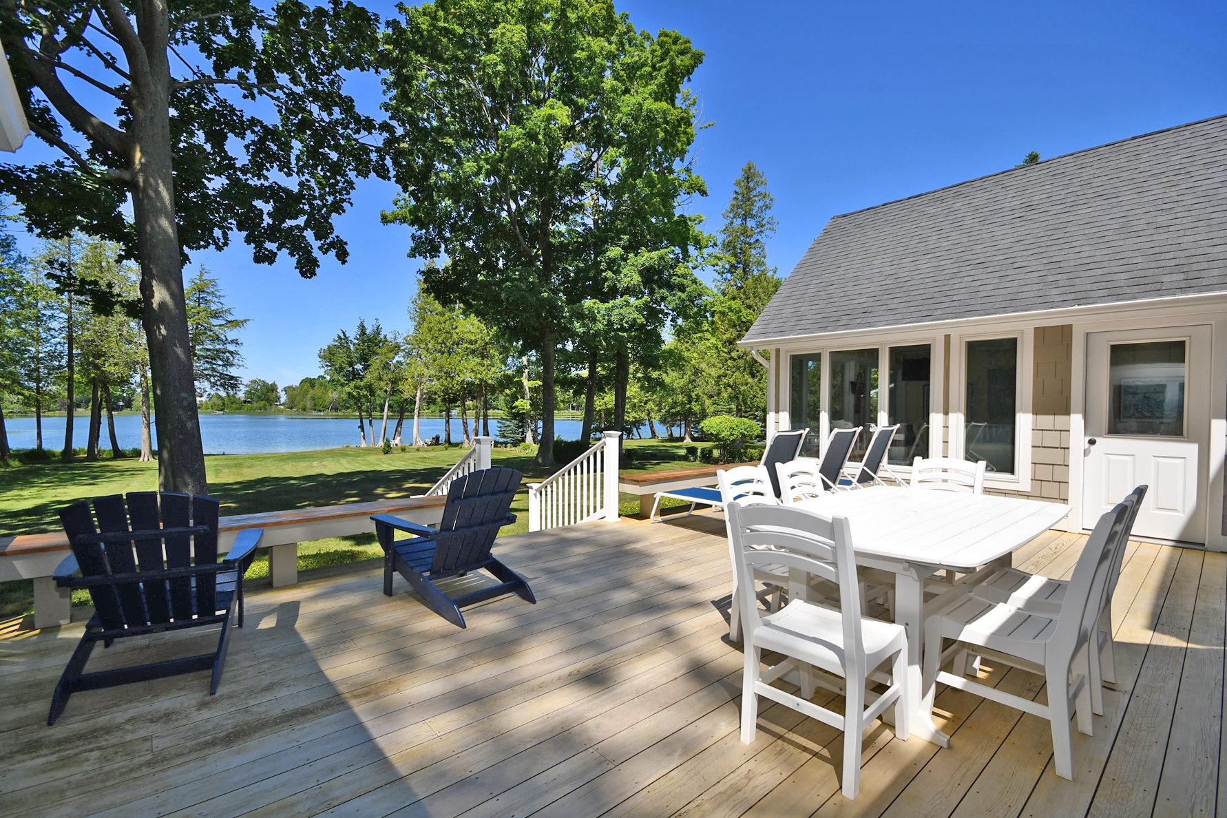From the moment one makes their way along the meandering, tree-lined driveway, it becomes clear that this stunning, immaculately kept home and property has more of an estate-like feel than that of a lake cottage. Originally built in 1987, this home has undergone a full remodel in the highest, dedicated fashion. It is situated in the village of Empire, on 100 ft of South Bar Lake water frontage and two parcels of land. No detail was spared in the remodeling process, both in design and with comfort and functionality. The lawn is expansive, manicured, and dotted with towering, stately trees, the decking runs the width of the home, allowing for great entertaining space and incredible views, and there's a separate, enclosed sunroom on one portion of the deck. Inside, the lofted ceilings open to a stunning, sundrenched kitchen, which is adjacent to both the living and dining room spaces. On the main floor, there's a powder room, primary suite with lake views and access, and a large, cheerful laundry and mudroom room that leads to the attached and heated two car garage. Upstairs, there are two more spacious bedrooms, two full bathrooms, one with soaring, dramatic ceilings, and at the end of the hallway is a very oversized bonus room space that serves as an additional family room area, game playing space, and also has its own stairway that leads down the garage. This home is on natural gas, has central heat and air, a back up generator, is on Empire water, a private septic system, has access to high speed internet and cable, and so, so very much more. Being sold furnished with few exceptions of artwork and personal items. This is a turn-key home, ready to be made in to your dream residence or getaway! Just a 10 minute walk in to downtown Empire, very near its incredible park on Lake Michigan, and just a stone's throw from the Sleeping Bear Dunes, Heritage Trail, Glen Lake, and Glen Arbor. One couldn't ask for too much more!