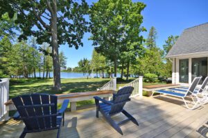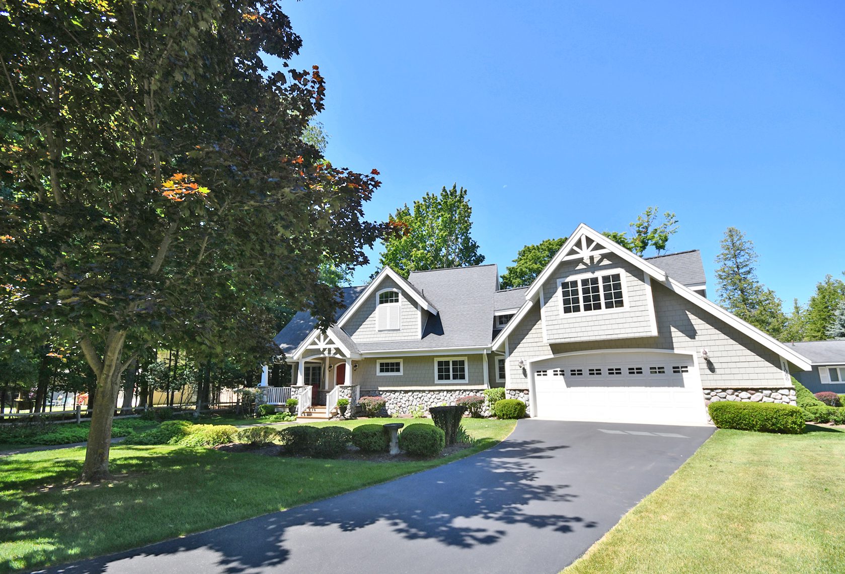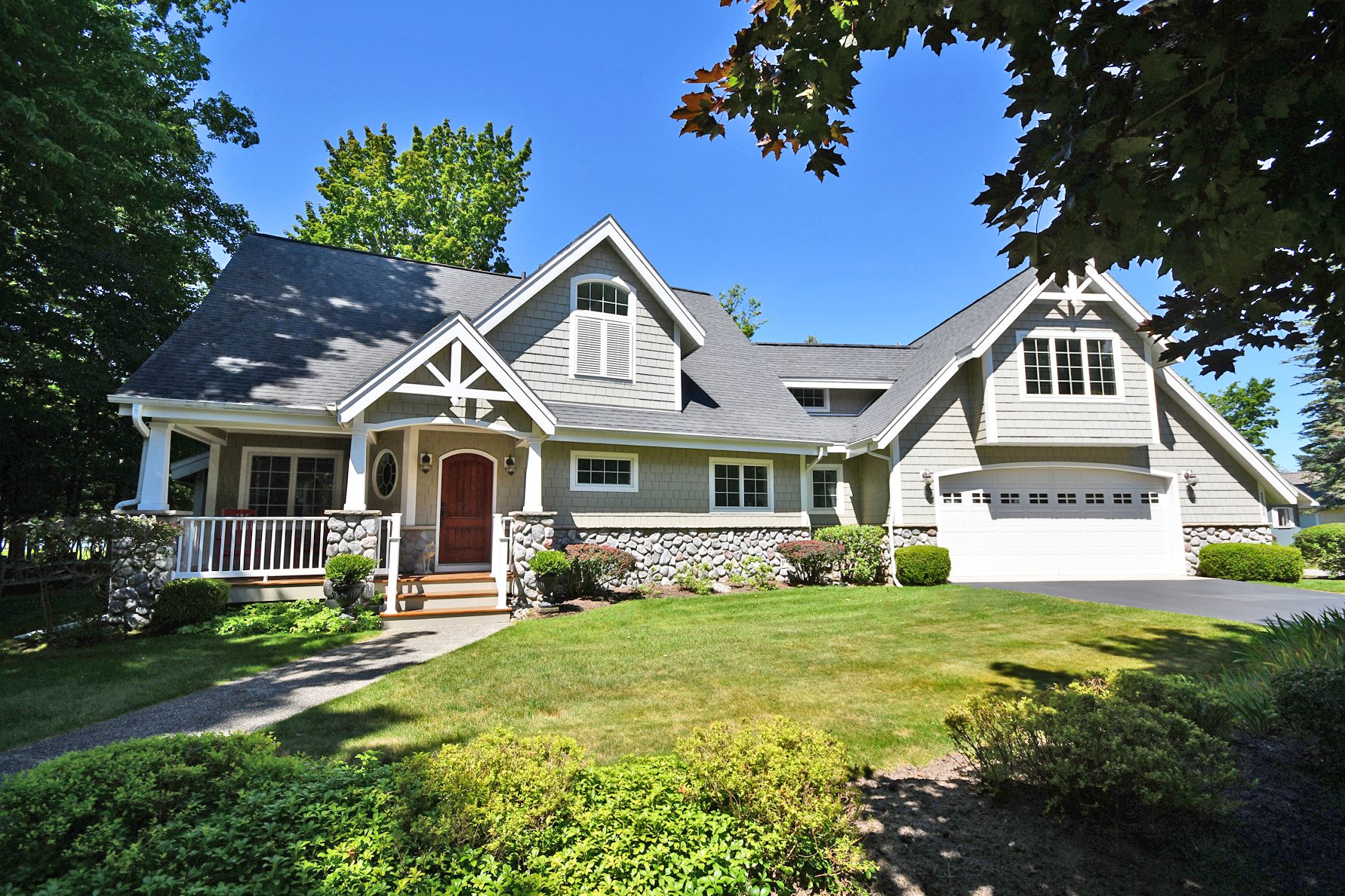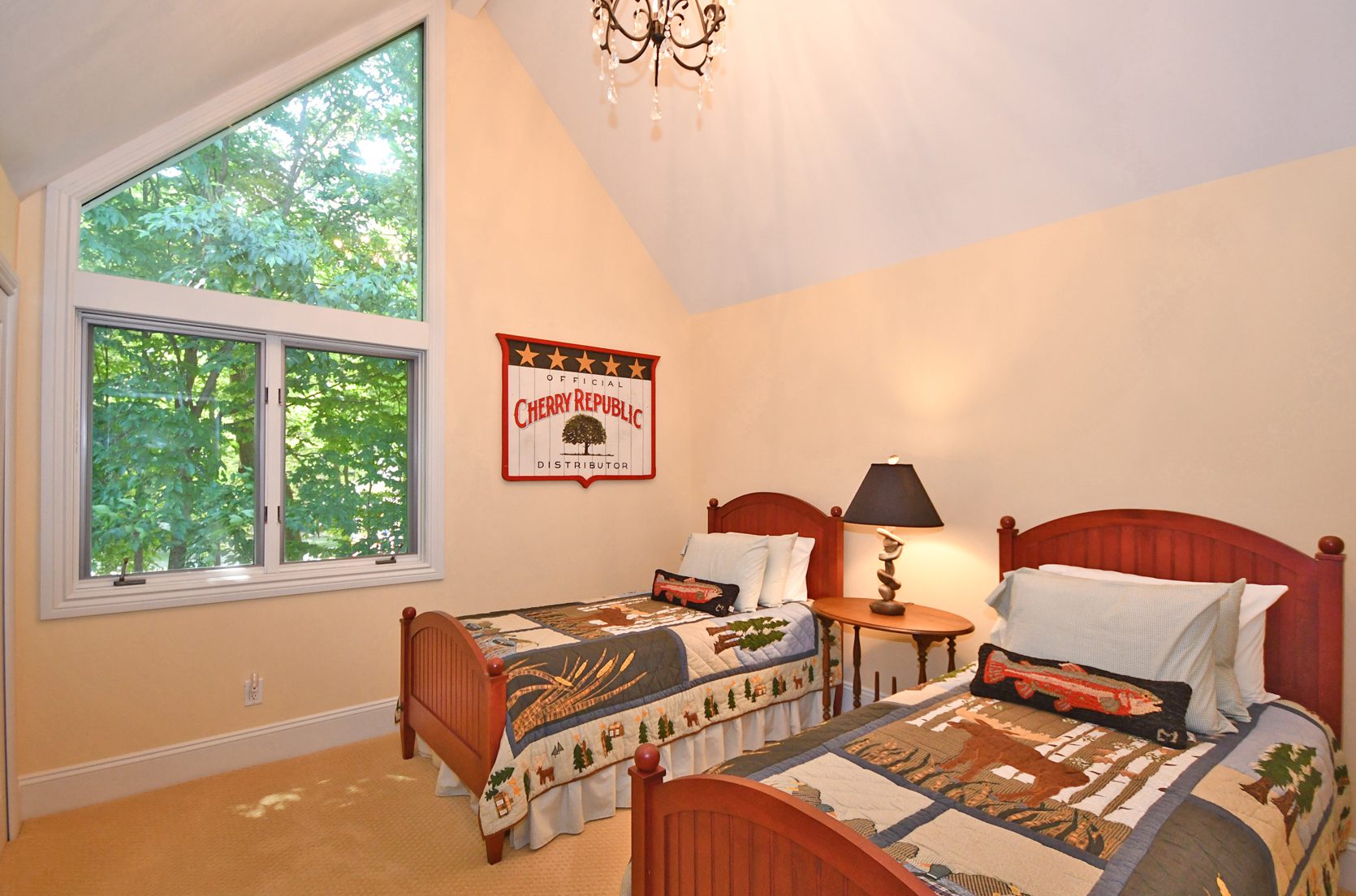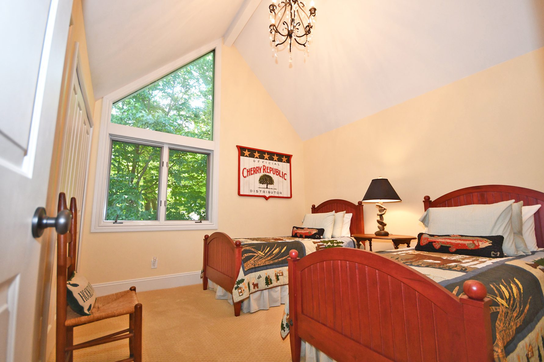 From the moment one makes their way along the meandering, tree-lined driveway, it becomes clear that this stunning, immaculately kept home and property has more of an estate-like feel than that of a lake cottage. Originally built in 1987, this home has undergone a full remodel in the highest, dedicated fashion. It is situated in the village of Empire, on 100 ft of South Bar Lake water frontage and two parcels of land. No detail was spared in the remodeling process, both in design and with comfort and functionality. The lawn is expansive, manicured, and dotted with towering, stately trees, the decking runs the width of the home, allowing for great entertaining space and incredible views, and there's a separate, enclosed sunroom on one portion of the deck. Inside, the lofted ceilings open to a stunning, sundrenched kitchen, which is adjacent to both the living and dining room spaces. On the main floor, there's a powder room, primary suite with lake views and access, and a large, cheerful laundry and mudroom room that leads to the attached and heated two car garage. Upstairs, there are two more spacious bedrooms, two full bathrooms, one with soaring, dramatic ceilings, and at the end of the hallway is a very oversized bonus room space that serves as an additional family room area, game playing space, and also has its own stairway that leads down the garage. This home is on natural gas, has central heat and air, a back up generator, is on Empire water, a private septic system, has access to high speed internet and cable, and so, so very much more. Being sold furnished with few exceptions of artwork and personal items. This is a turn-key home, ready to be made in to your dream residence or getaway! Just a 10 minute walk in to downtown Empire, very near its incredible park on Lake Michigan, and just a stone's throw from the Sleeping Bear Dunes, Heritage Trail, Glen Lake, and Glen Arbor. One couldn't ask for too much more!