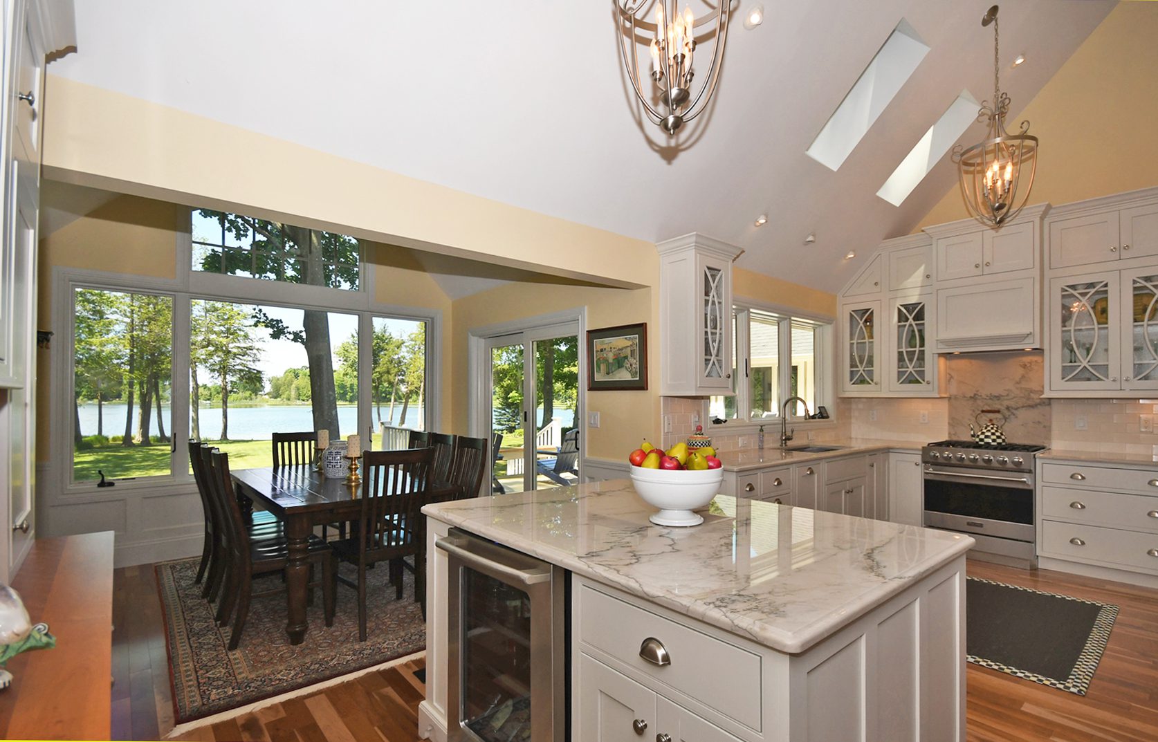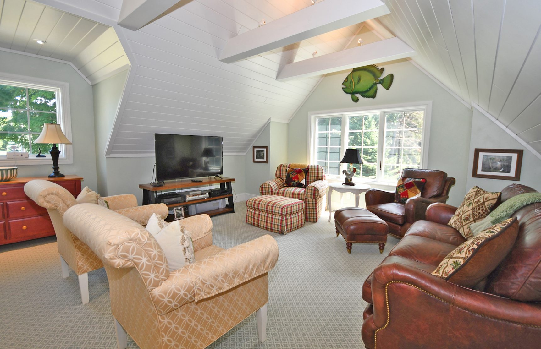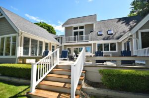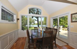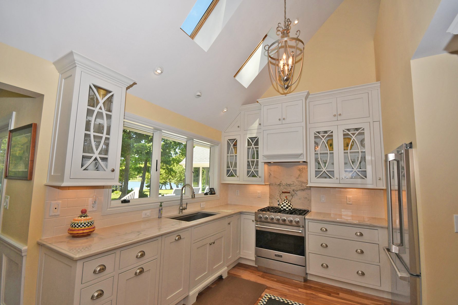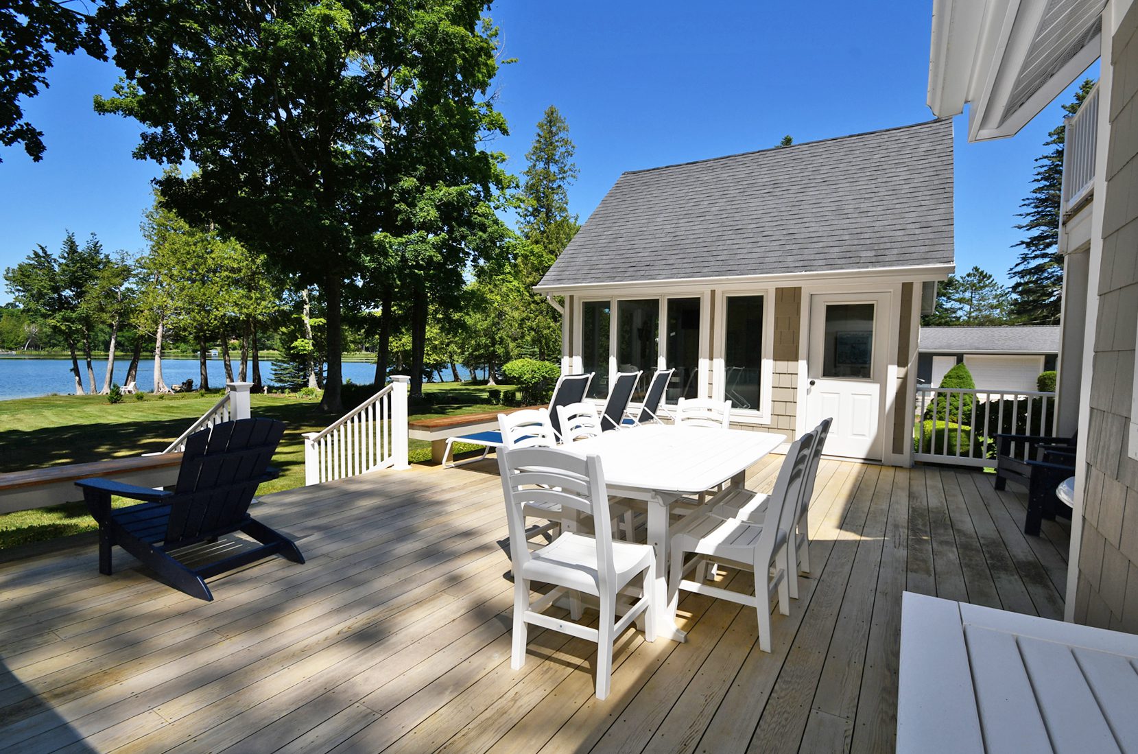 From the moment one makes their way along the meandering, tree-lined driveway, it becomes clear that this stunning, immaculately kept home and property has more of an estate-like feel than that of a lake cottage. Originally built in 1987, this home has undergone a full remodel in the highest, dedicated fashion. It is situated in the village of Empire, on 100 ft of South Bar Lake water frontage and two parcels of land. No detail was spared in the remodeling process, both in design and with comfort and functionality. The lawn is expansive, manicured, and dotted with towering, stately trees, the decking runs the width of the home, allowing for great entertaining space and incredible views, and there's a separate, enclosed sunroom on one portion of the deck. Inside, the lofted ceilings open to a stunning, sundrenched kitchen, which is adjacent to both the living and dining room spaces. On the main floor, there's a powder room, primary suite with lake views and access, and a large, cheerful laundry and mudroom room that leads to the attached and heated two car garage. Upstairs, there are two more spacious bedrooms, two full bathrooms, one with soaring, dramatic ceilings, and at the end of the hallway is a very oversized bonus room space that serves as an additional family room area, game playing space, and also has its own stairway that leads down the garage. This home is on natural gas, has central heat and air, a back up generator, is on Empire water, a private septic system, has access to high speed internet and cable, and so, so very much more. Being sold furnished with few exceptions of artwork and personal items. This is a turn-key home, ready to be made in to your dream residence or getaway! Just a 10 minute walk in to downtown Empire, very near its incredible park on Lake Michigan, and just a stone's throw from the Sleeping Bear Dunes, Heritage Trail, Glen Lake, and Glen Arbor. One couldn't ask for too much more!