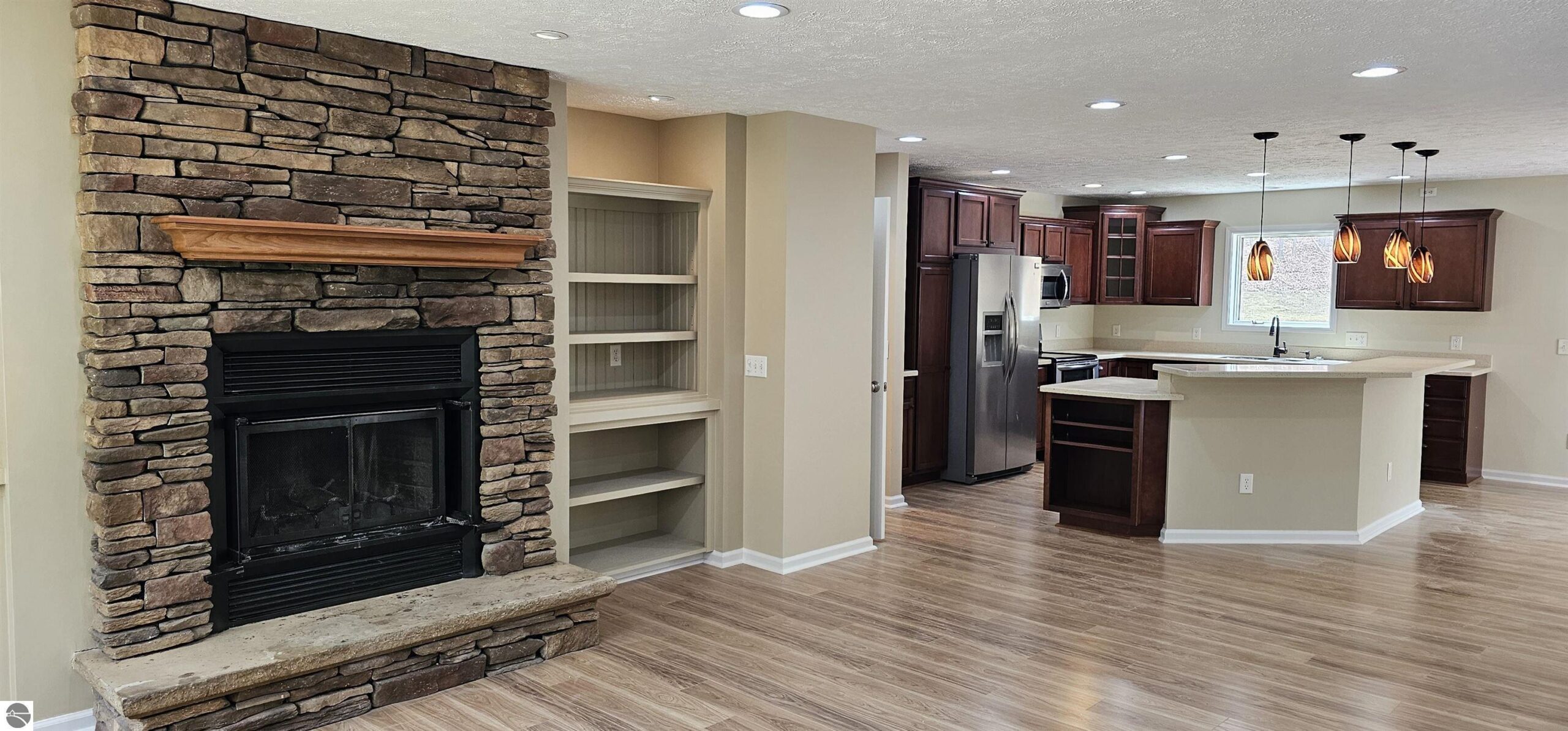SELLER SAYS MAKE IT GO AWAY! BRING ANY/ALL OFFERS. Heat has been installed in the lower level bedroom. This is a great Suttons Bay home. Three bedrms and 2 full baths on the main floor+ 1 full bath and spacious family room on lower level. Open concept living features big kitchen island, solid surface countertops dining area and cozy living room with wood burning fireplace. New flooring throughout and new lighting. Lower level family room pre-wired for surround sound with nook to create wet bar, dry bar or small home office. Full bathroom and fully conforming fourth bedroom awaits your creativity to finish it out. House is virtually staged for the purposes of marketing The attached garage is oversized- has built-in shelving and electric door openers on both doors. The grounds are like a private oasis. Step out the backdoor and enjoy the secluded partially wooded lot and the serenity of the forest out your backdoor. It is wired for a hot tub on back patio complete with floor drain. This home has tons of storage in the lower level which could be converted to additional living space. Think game room- home gym etc