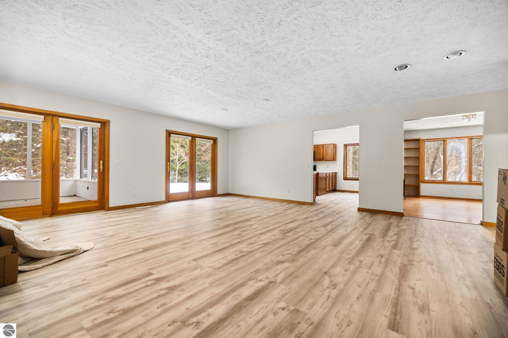 A serene, cheerful retreat in one of Leelanau County’s most treasured locations. Tucked on nearly two acres of peaceful woods, this bright and inviting ranch style home offers wonderful privacy with easy access to the sandy shoreline of Grand Traverse Bay. A sunlit living room with large windows opens to a breezy screened porch, while the kitchen and dining area provide a comfortable, connected layout. Three bedrooms, two baths, charming built-ins, a fenced yard, and a two-car garage add function and ease. Enjoy quiet living just moments from the natural beauty and small-town charm of Northport.