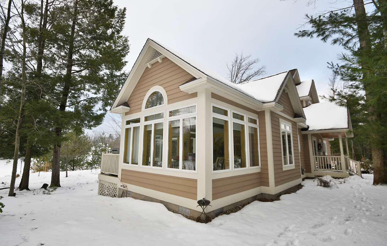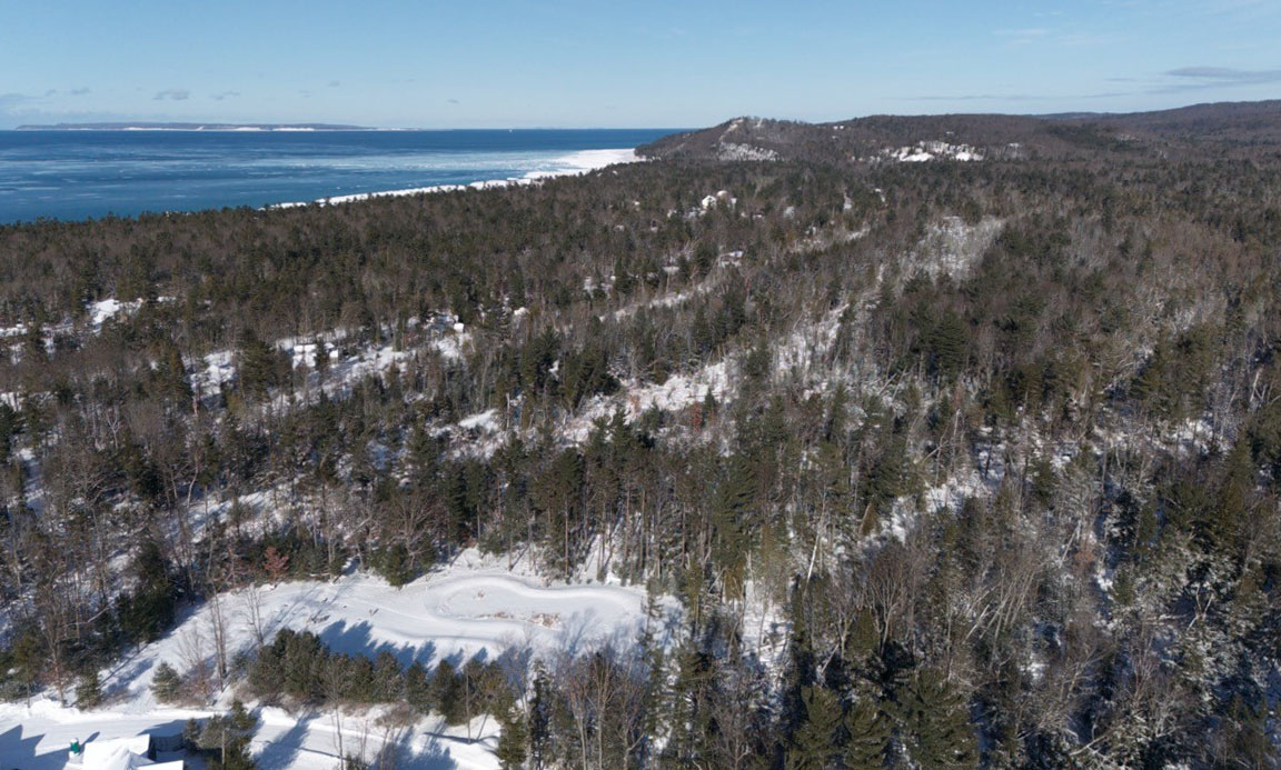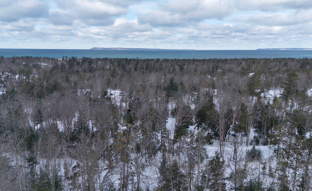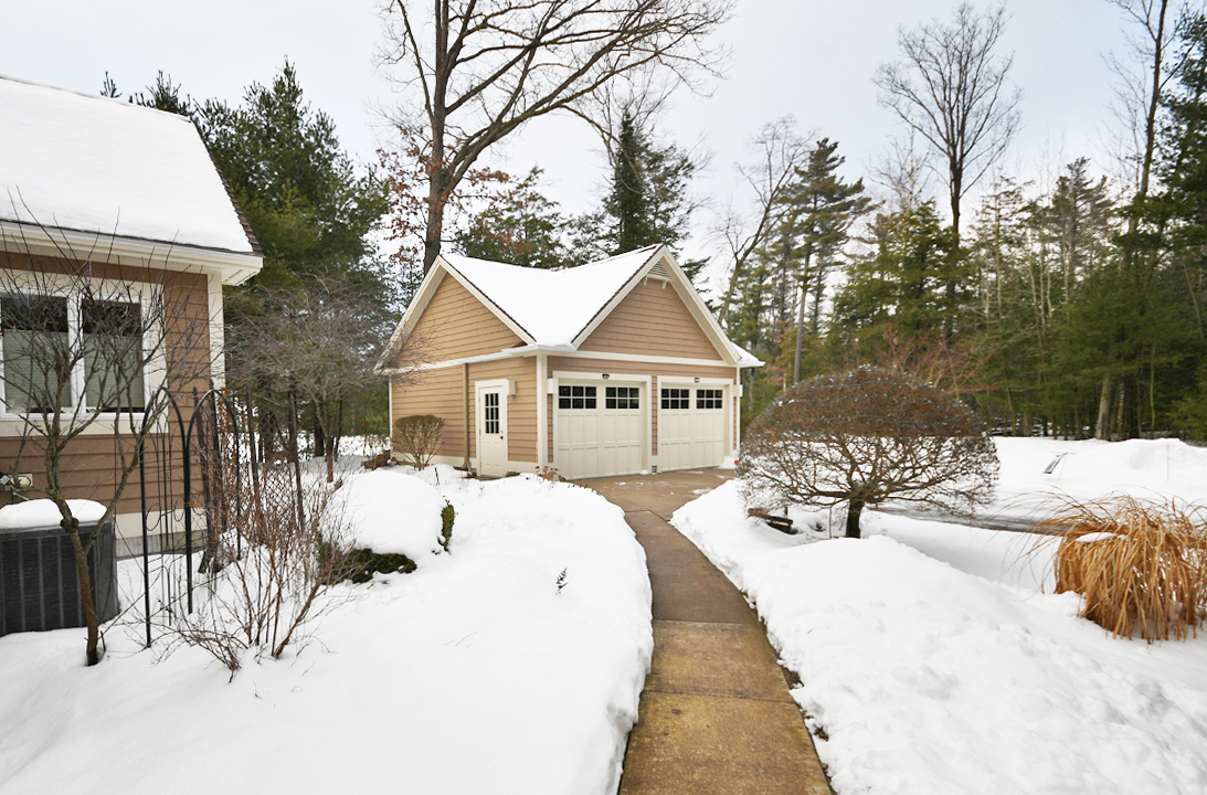 Every creature comfort is part of this property for building a life in northern Michigan that can go the duration! There's a two car detached garage (with additional storage space above it), a main floor primary suite (and additional second bedroom on the main floor), a large living space, open kitchen and dining area with a family/sun room adjacent, main floor laundry, expansive decking, heat and air conditioning, a built in sound system, and so much more. The upper level of the home has two more bedrooms, an additional bathroom, and the landing space is currently being used as a small office. The dry crawl space is ideal for seasonal storage and is easily accessed from a traditional door on the main floor of the home.