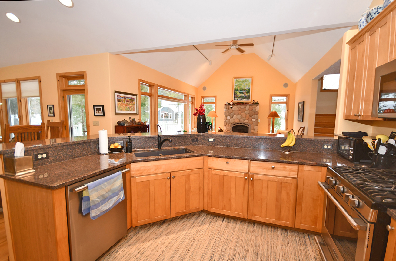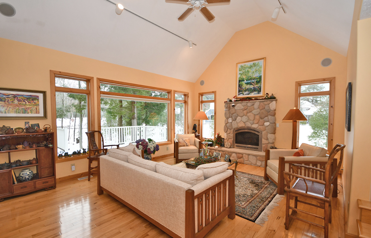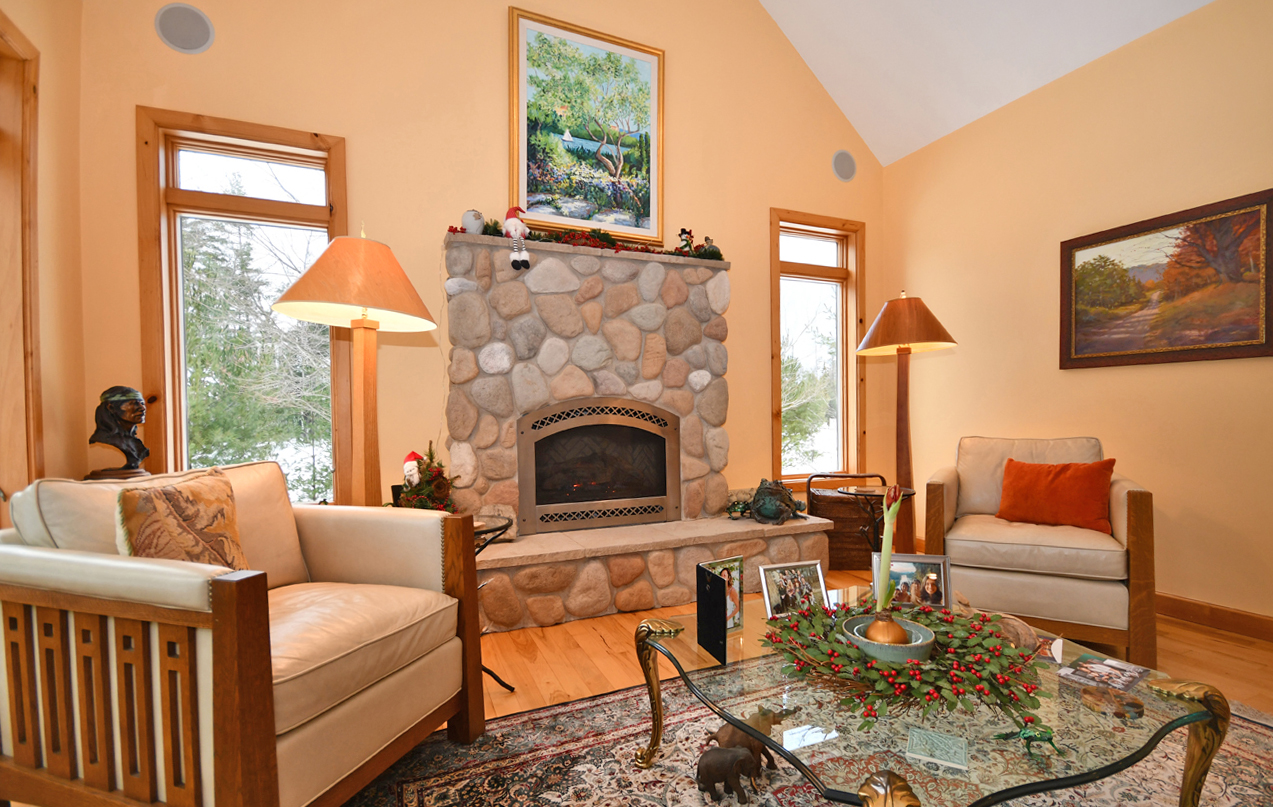 This home feels like a quality build from the moment one walks in the door from the welcoming front porch, and is flooded with light and character details, such a charming fieldstone fireplace and Craftsman touches. A true gem in Glen Arbor!