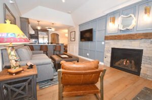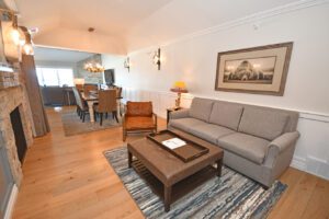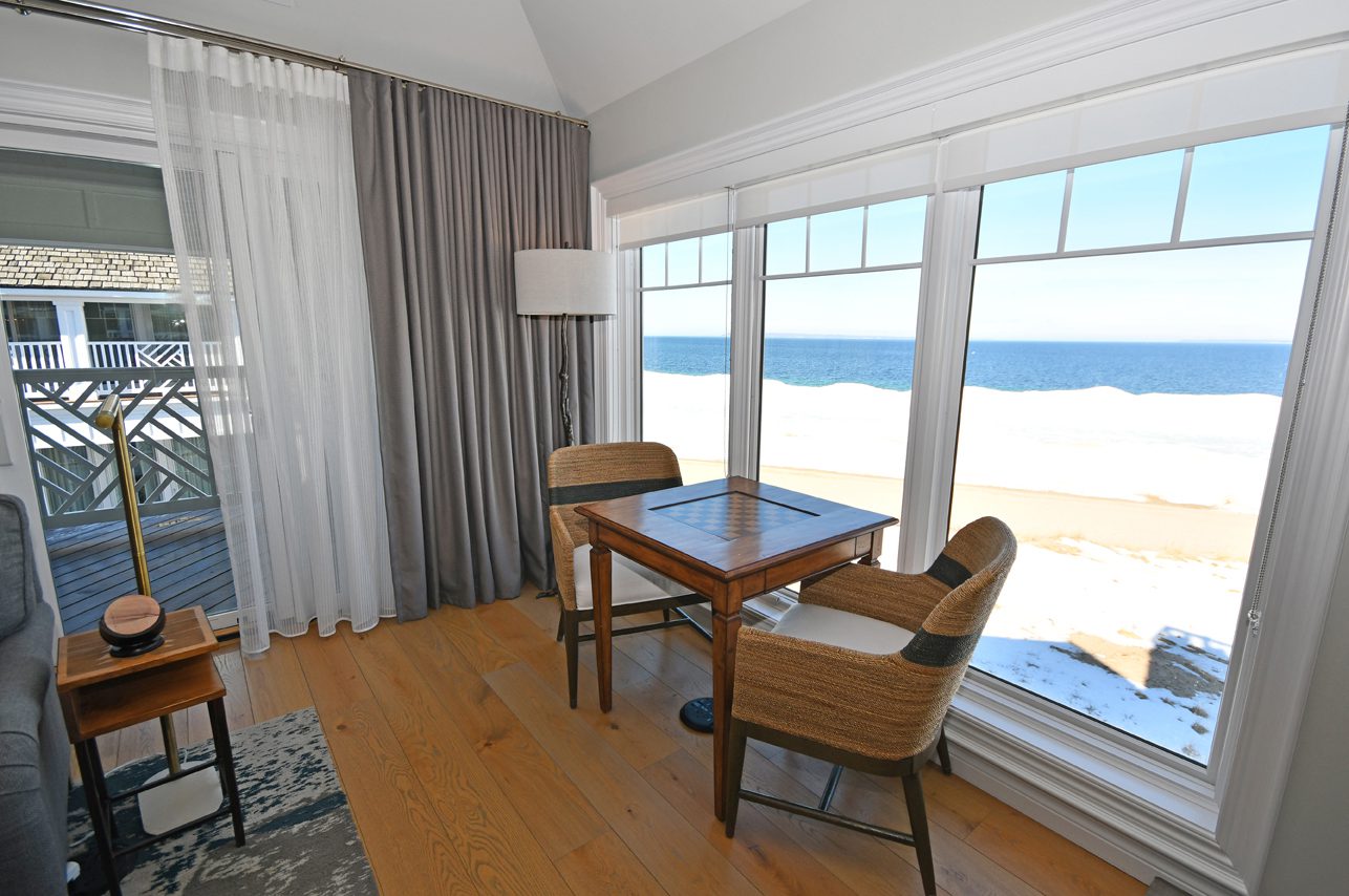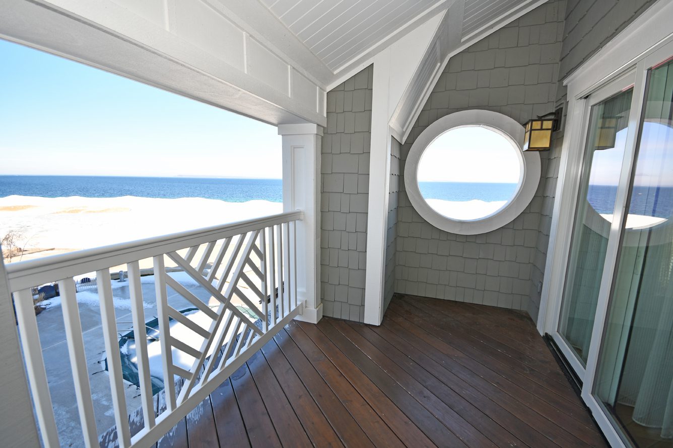 This specific condo, unit 13, has two bedrooms, a den with a murphy bed, three bathrooms, a gourmet kitchen with both Wolf and Sub-Zero appliances, two fireplaces (in this unit - both in the living room and family room spaces), incredible Lake Michigan views, a private deck with patio furniture and a grill, beach access, and is located adjacent to the fabulous fine dining restaurant, Blu. Unit 13 is an upper level unit (there's an elevator available!), and most importantly, was fully remodeled in 2023.
